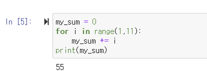 ▶️ my_sum = 0 : my_sum 변수를 만들어 초기값을 0으로 지정함