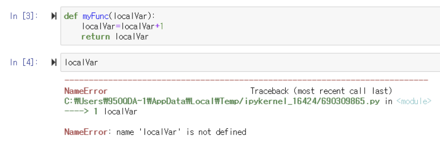 → 지역 변수는 함수가 종료되면서 사라지기 때문에 localVar 값을 출력할 수 없게 되어 발생하는 오류