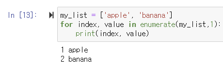 ▶️ index 값을 1부터 지정하기 위해서는 iterable 뒤에 1을 입력해주면 가능