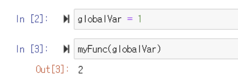 ▶️ 사용자 정의 함수 myFunc의 parameter 값으로 지역 변수를 생성함