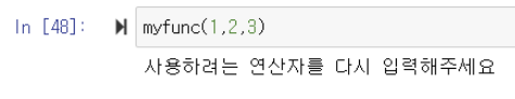 ▶️ method를 입력해야 하는 곳에 '합', '차', '곱' 이외에 다른 값을 입력했기 때문에 '사용하려는 연산자를 다시 입력해주세요'가 출력됨