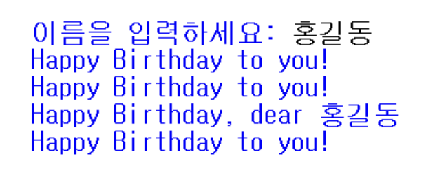 사용자에게 이름을 입력받아 생일 축하 노래를 출력하는 프로그램을 작성해보자.