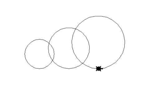 원의 반지름을 입력 받아 값을 20씩 증가시키면서 (0,0), (100,0), (200,0) 좌표에 원을 3개 그리는 프로그램을 작성해보자.