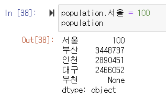 ▶️ 특정 index의 value값을 바꾸고 싶을 때는 변수.index명 = 특정 값을 활용
