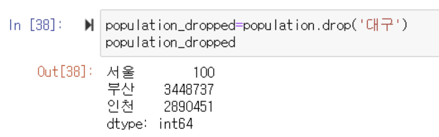▶️ 변수.drop('index명')을 활용하면 특정 index값과 value값을 제거할 수 있음