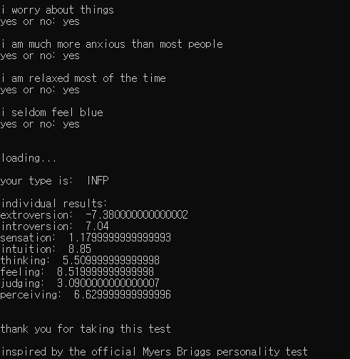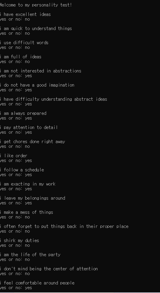 → questionsList = [] : MBTI를 확인하기 위한 질문을 저장할 questionList 리스트를 만듦