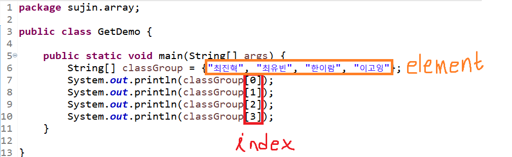 String[] classGroup = {"최진혁", "최유빈", "한이람", "이고잉"};