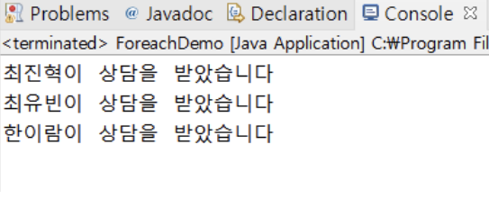 ▶️ members[0]부터 [2]까지 순서대로 해당하는 최진혁, 최유빈, 한이랑 순서대로 결과값이 출력됨