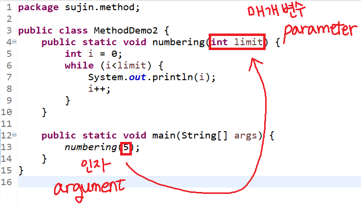 ▶️ public static String numbering(int init, int limit) : 메소드 numbering이 return할 값이 반드시 문자열임을 의미함