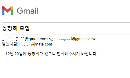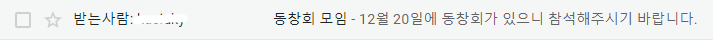 msg['Subject'] = '동창회 모임'