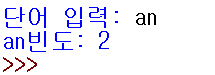 ▶ word_dic 딕셔너리에 사용자가 찾고자 입력한 단어가 존재한다면 단어의 빈도가 몇 회인지 출력