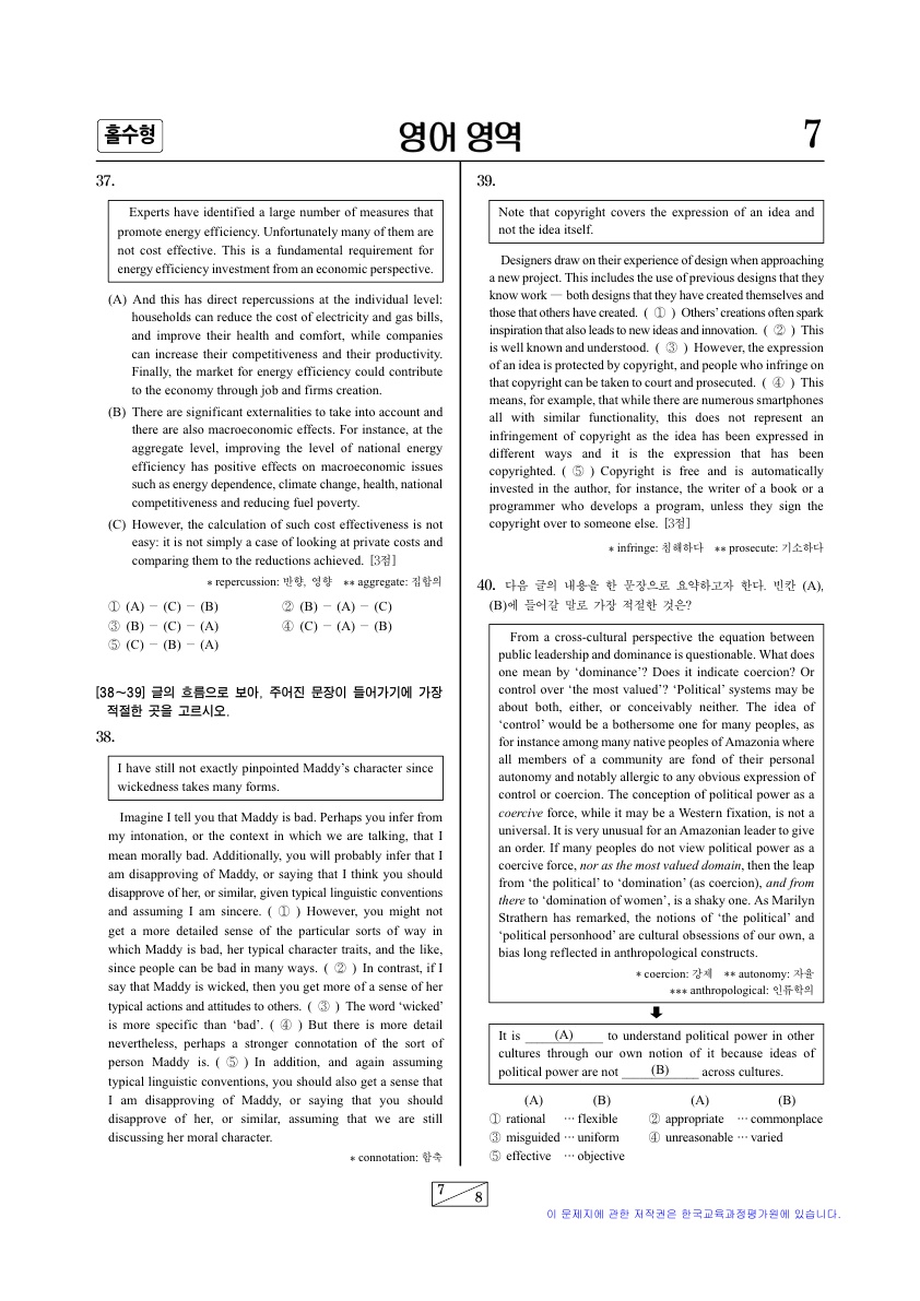 ▶ 실제 2021학년도 수능 영어(홀수형) 시험지 40번 문제 지문을 사용