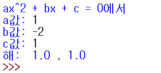 → sys.exit() : a의 계수가 0이면 이차방정식이 성립하지 않으므로 프로그램 종료