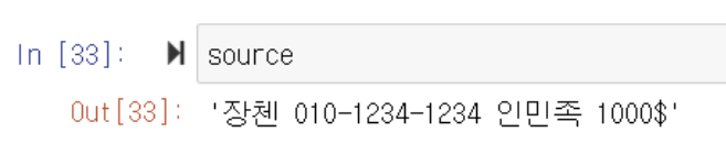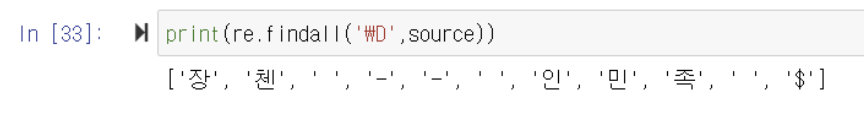 → source 변수에 저장된 값 중에서 숫자를 제외한 나머지 문자와 공백, 특수문자까지 모두 출력됨
