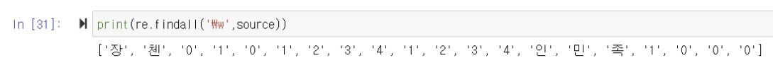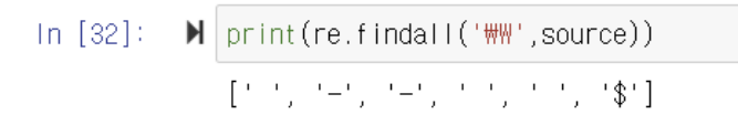 ▶️ \W : 글자 대표 문자를 제외한 글자들(특수문자, 공백 등)