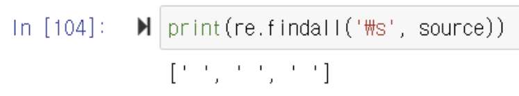 → source 변수에 저장된 값 중에서 공백 문자만 출력됨