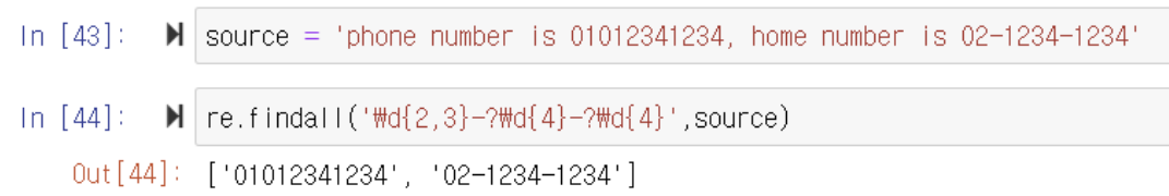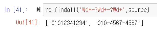 ▶️ + 수량자를 사용하면 source에서 한자리 수 이상을 컴퓨터가 분석함