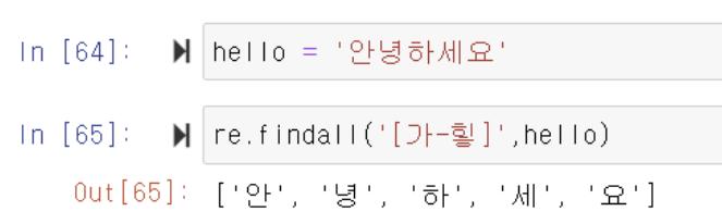 ▶️ [가-힣] : 한글의 유니코드 순서 기준 각각 첫 번째값과 마지막 값
