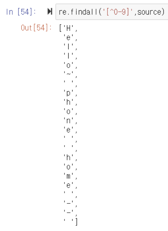 ▶️ [^0-9] : 0부터 9를 제외하고 출력하라