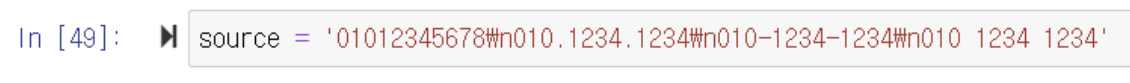 ▶️ 숫자가 한개 이상이고 공백, -, .이 있거나 없는 패턴의 전화번호 3개를 source에 저장함