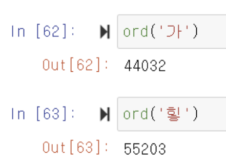 ▶️ 영어와 한글 모두 ord 함수를 통해 유니코드 순서를 알 수 있음