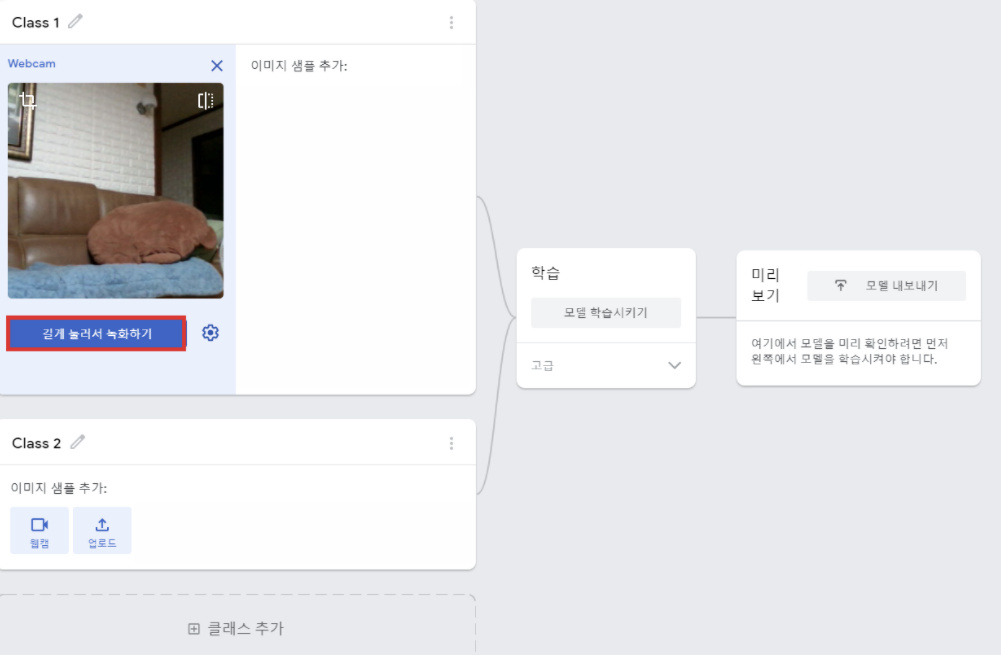 ▶️ 웹캠을 켜주고 길게 눌러 녹화하기를 선택하면 연속으로 사진이 촬영됨