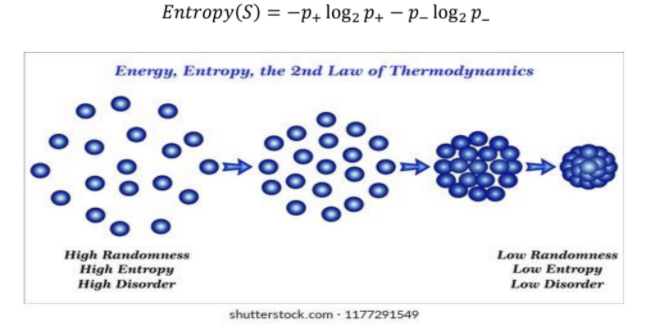 → 속성공간에서 출력 변수가 유사한 데이터끼리 분할하는 지표(동질성)가 필요하며 Entropy, 지니계수의 개념 사용