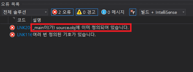 ★ 한 프로젝트 내에 main 함수는 하나만 쓸 수 있기 때문에 오류가 발생 ★