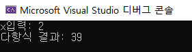 printf("다항식 결과: %d\n", fx);