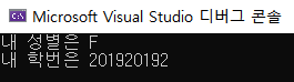 본인학번과 성별(F 또는 M)을 변수에 저장한 뒤 출력하는 프로그램을 작성해보자.