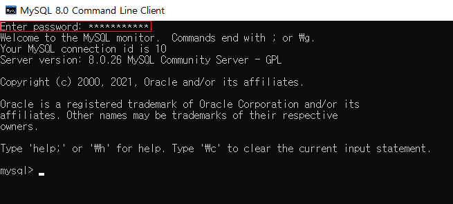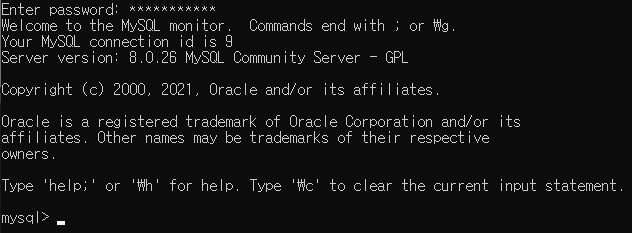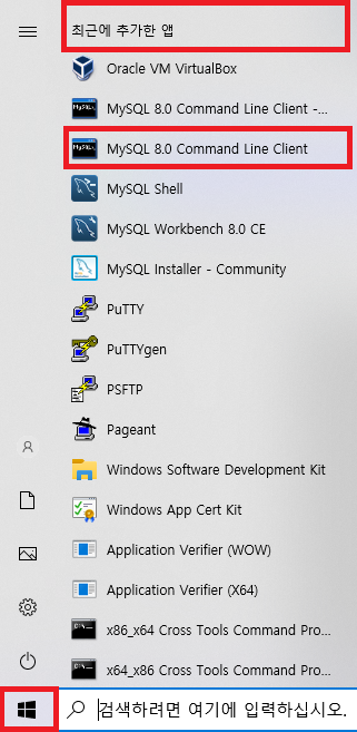 - 모든 프로그램 → MySQL → MySQL 8.0 Command Line Client