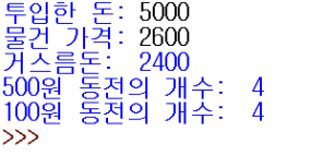 ▶ 거스름돈을 100으로 나눴을 때의 몫 : 100원 동전의 개수
