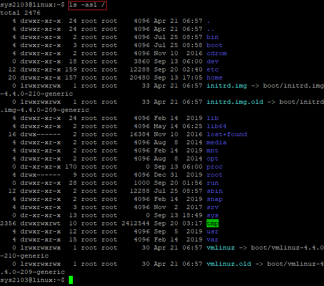 ls(혹은 dir) [옵션] [파일 또는 디렉토리명]