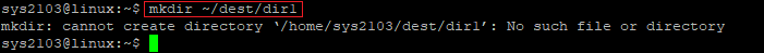 → -p 옵션을 사용하지 않고 출력하면 ~/dest 디렉토리가 존재하지 않아 오류가 발생함