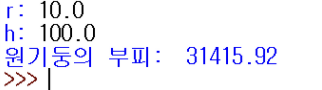 ▶ 원기둥의 부피 : 3.141592*r**2*h