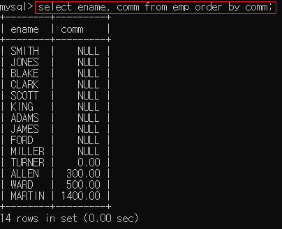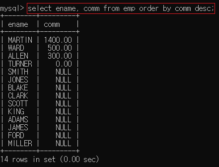 ≫ NULL값인 경우 오름차순에서는 가장 처음, 내림차순에서는 가장 나중에 등장