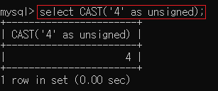 ▶ select CAST('4' as unsigned);