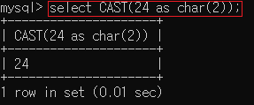 ▶select CAST(24 as char(2));