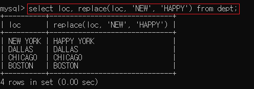 ▶ select loc, replace(loc, 'NEW', 'HAPPY') from dept;