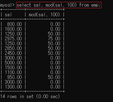 ▶ select sal, mod(sal, 100) from emp;