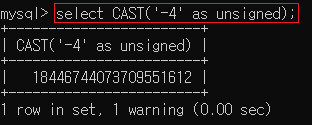 ▶ select CAST('-4' as unsigned);