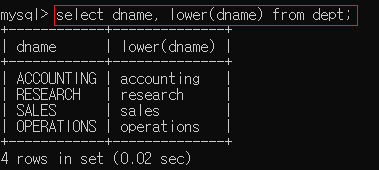▶ select dname, lower(dname) from dept;