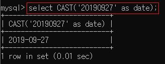 ▶ select CAST('20190927' as date);