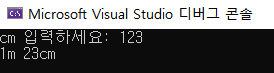▶ m = cm / CM : 사용자가 입력한 cm 값을 100으로 나눈 몫은 m