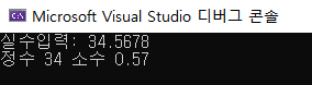▶ printf("정수 %d 소수 %.2f\n", (int)num, num-(int)num)