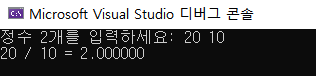 ▶ / 연산자의 경우 소수점 둘 째자리 까지만 출력되도록 함