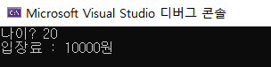 → 65세 이상은 5000원, 그 이하는 10000원을 출력