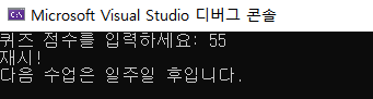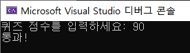 ▶ 사용자가 입력한 퀴즈 점수가 70점 미만이면 '재시!' 그렇지 않으면 '통과!' 출력