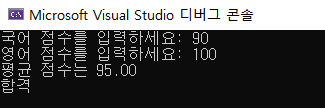 ▶ 사용자에게 국어 점수와 영어 점수를 입력받은 뒤 평균 값을 구함
