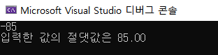 printf("입력한 값의 절댓값은 %.2f\n", y);